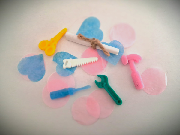-Des confettis roses et bleus – pour le/la mettre sur la bonne voie