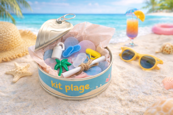 Cette boîte surprise annonce grossesse – thème plage renferme un trésor délicatement préparé pour révéler une grande nouvelle!