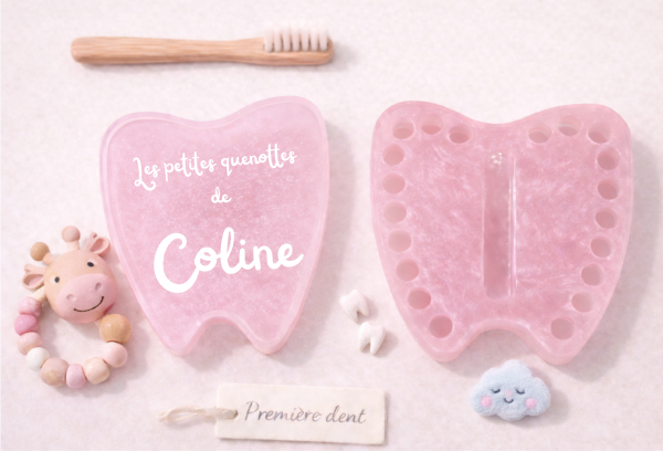 Boîte à dents de lait rose personnalisable